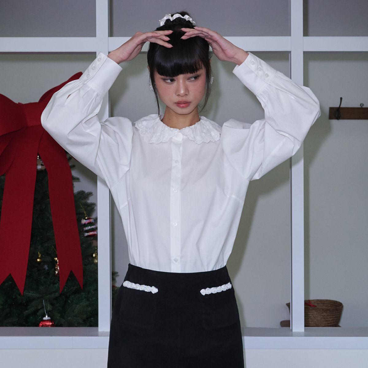 Lace Collar Puff Blouse_White