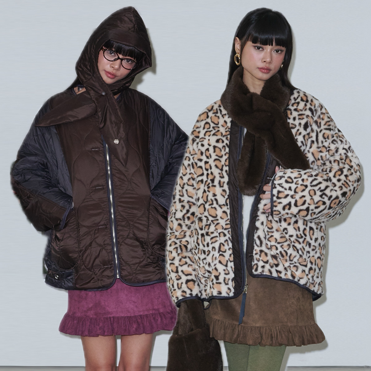 Leopard Reversible Quilted Fur Jacket_Brown+Cream