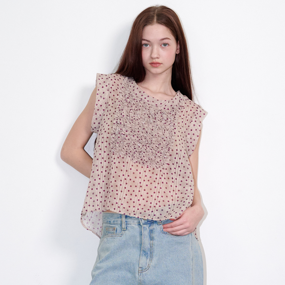 Dot Frill Chiffon Blouse Beige