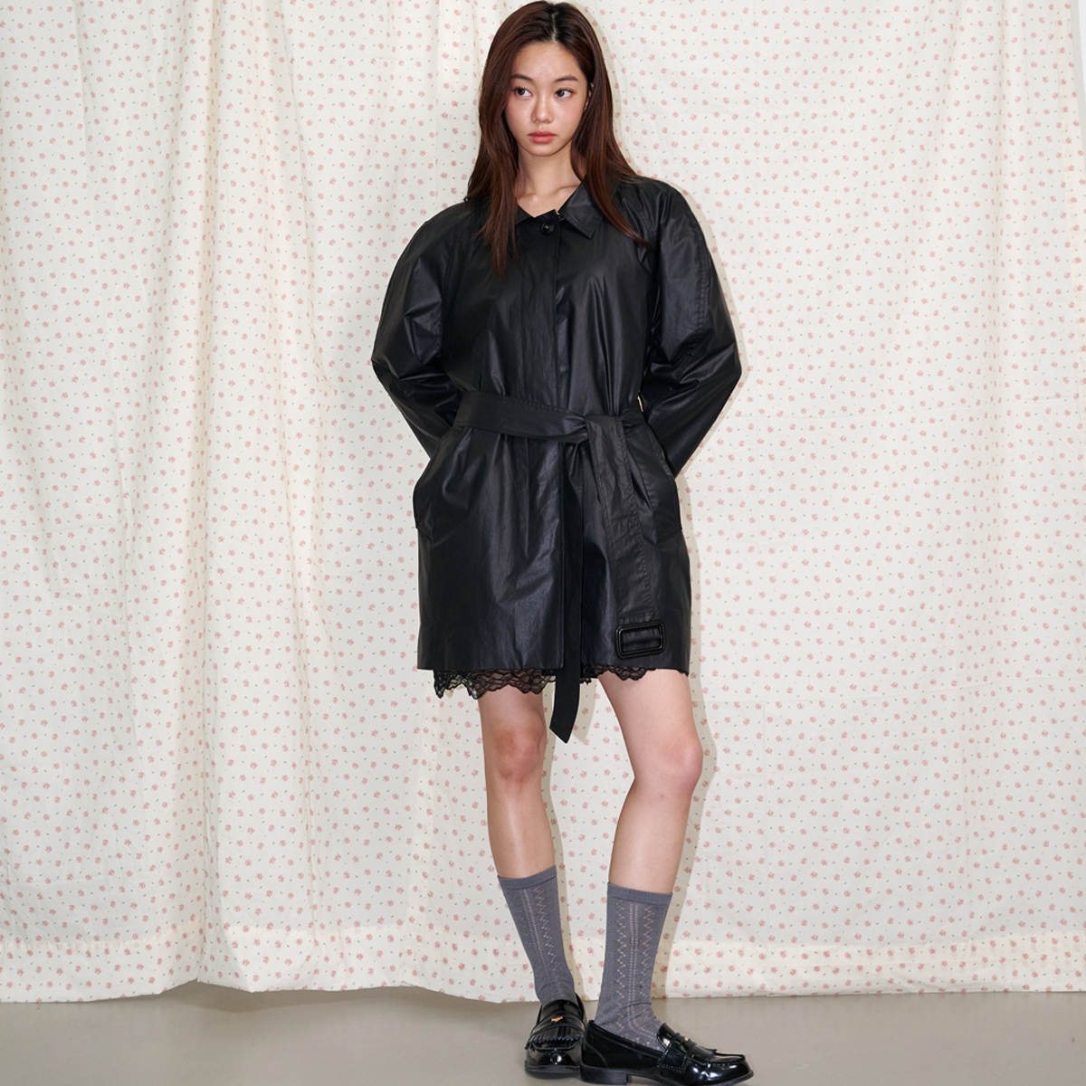 Belted Half Trench Coat Shiny black