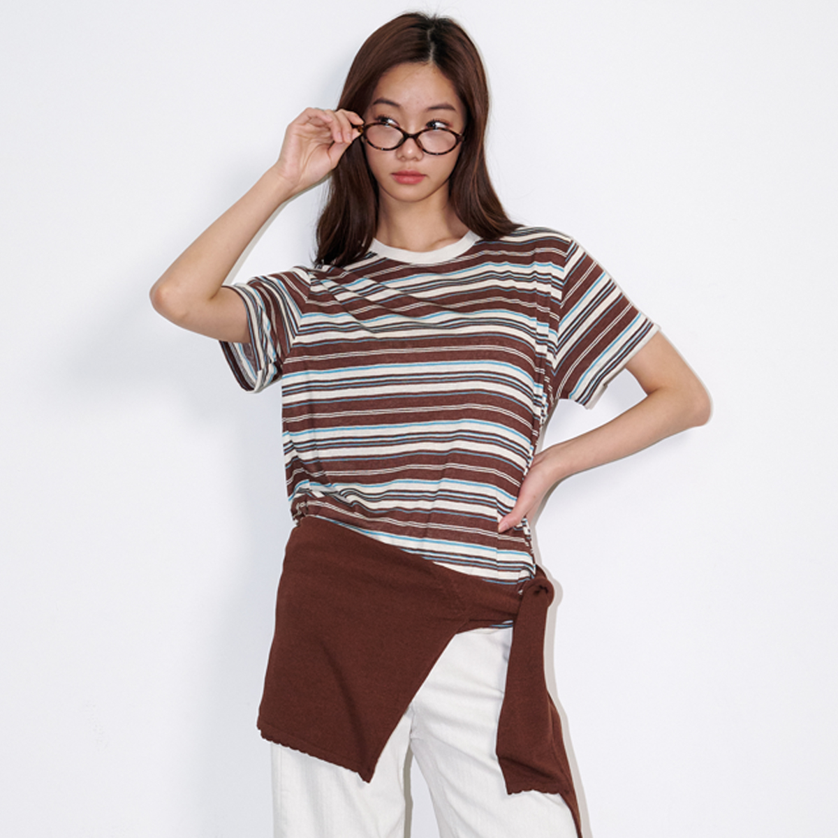 Multi-stripe short-sleeved t-shirt Brown
